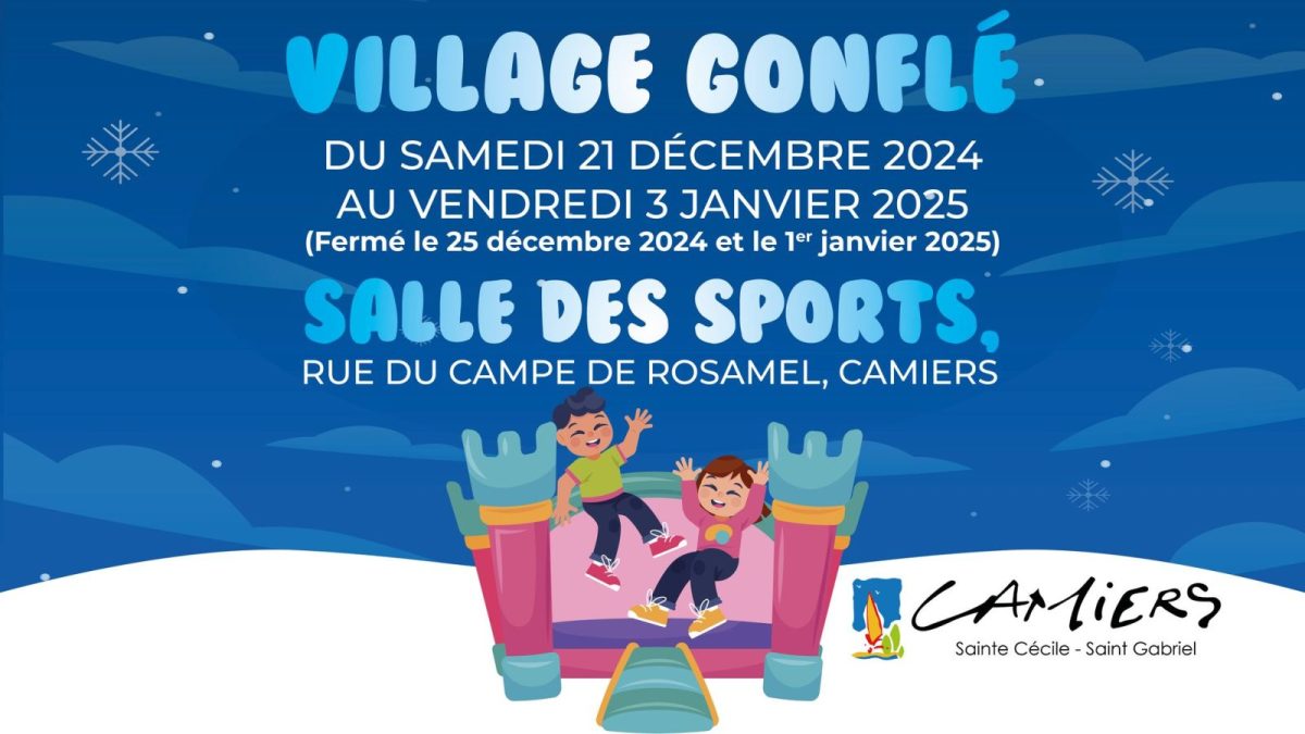 A l’occasion des vacances de Noël, c’est le retour tant attendu du Village Gonflé, un espace ludique et sécurisé qui prend ses quartiers à la Salle des sports. Profitez de cette aire de jeux géante pour des vacances pleines de rebondissements !